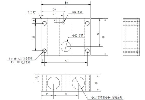 根据夹具的实际需要,调节导杆上的升降模组位置,将升降机构安装到测试夹具箱体上去,相关尺寸位置见固定尺寸中的尺寸标注;